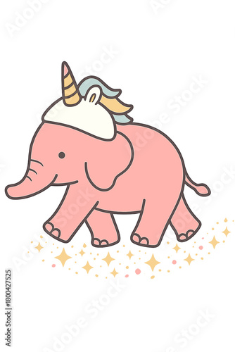 © Natallia, Naklejka premium A pink elephant dons a unicorn hat while strolling across glitter