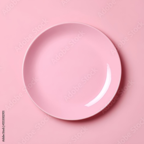 Obraz premium A pink empty plate on a matching background, offering a minimalist aesthetic. Perfect for culinary presentations.