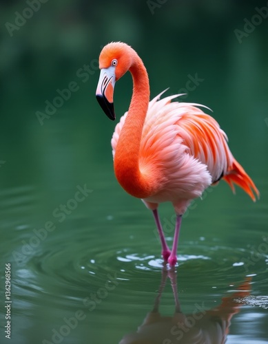 © Oleg, Fototapeta premium A pink flamingo standing in a body of water