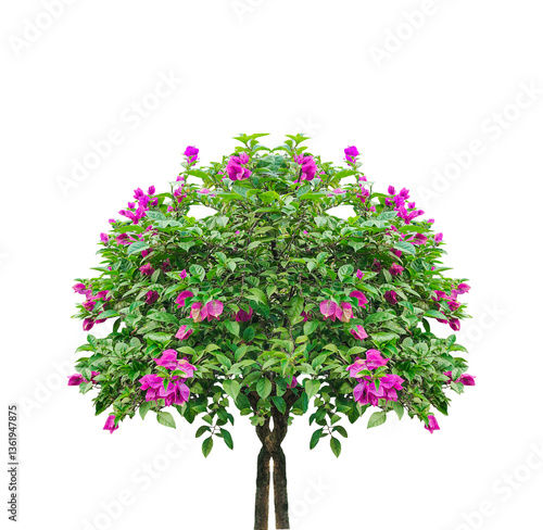 © DesignerSaidur, Fototapeta premium A pink floral tree, isolated against png, blooms with spring beauty, Tree with pink flowers in a spring garden, Vibrant Pink Bougainvillea in Full Bloom