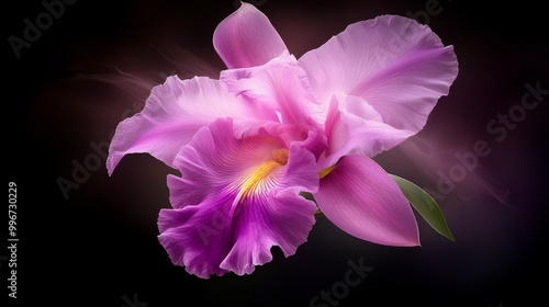 Fototapeta premium A pink flower, tightly framed against a black backdrop, with a softly blurred...