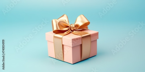 © intan, Obraz premium A pink gift box with a gold ribbon on a blue background