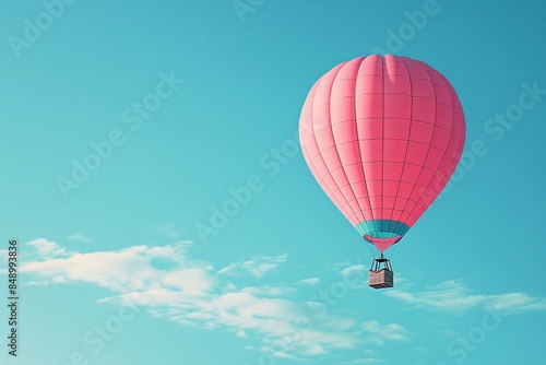© Preeyanuch, Fototapeta premium A pink hot air balloon floats in a blue sky.