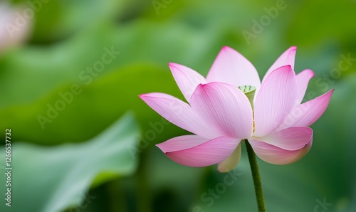 © simba kim, Obraz premium A pink lotus flower blooms, with a green leaf background, Generative AI