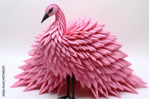 Fototapeta premium A pink origami bird is standing on a white surface