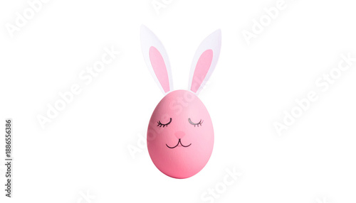 © Asif, Fototapeta premium a pink painted Easter egg with bunny ears isolated on transparent background