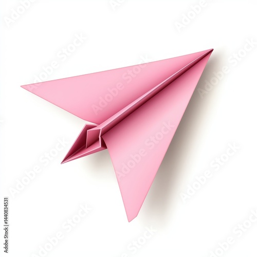© Digital Design, Fototapeta premium A pink paper airplane is neatly folded and placed on a white background.