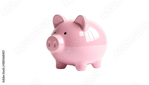 © fitra, Obraz premium A pink piggy bank standing on a plain surface, viewed from the front, with a shiny finish and cute expression.