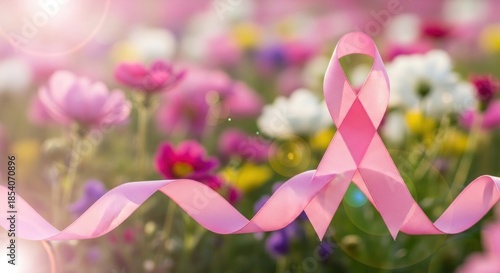 Fototapeta premium A pink ribbon with a floral background, symbolizing breast cancer awareness.
