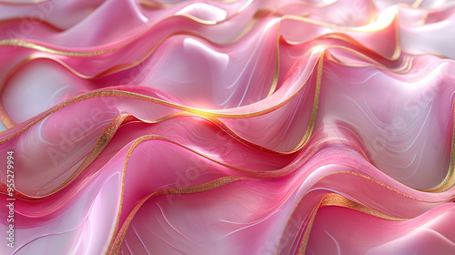 © wassana, Fototapeta premium A pink ribbon with gold accents