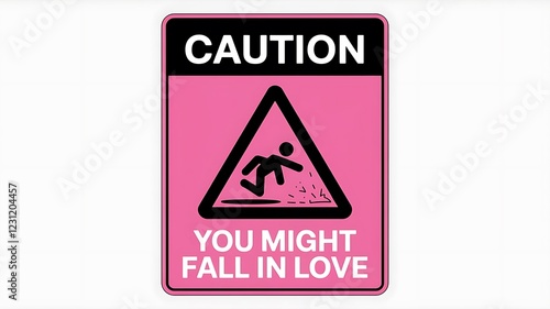 © BeeSee, Obraz premium a pink signboard with a triangular warning symbol. Inside the triangle, there's a silhouette of a person seemingly falling or tripping created with generative ai