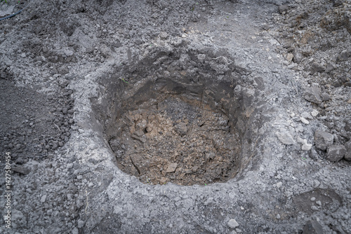 © Влад Варшавский, Naklejka premium A pit prepared for planting tree seedlings