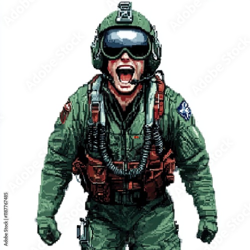 Fototapeta premium A Pixel Art Depiction Of A Yelling Fighter Pilot