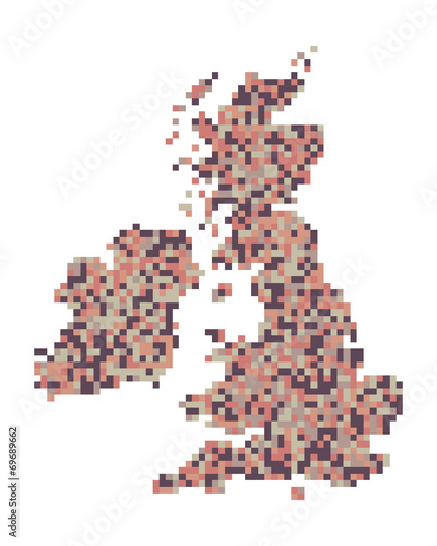© miketea88, Obraz premium A pixel art style vector of the British Isles and Ireland