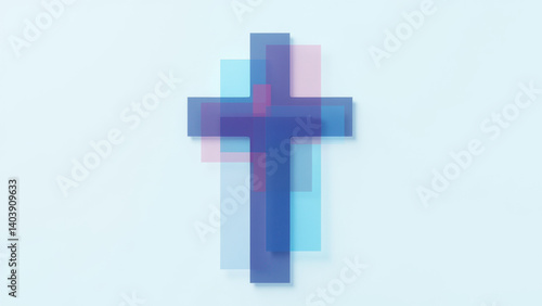 © Tameem, Obraz premium A pixelated Christian cross on a clear sky.
