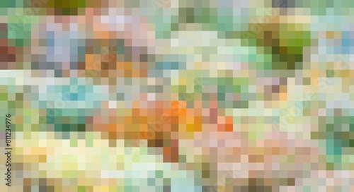 Fototapeta premium A pixelated image of a forest with a variety of colors and textures