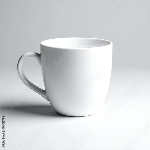 Obraz premium A plain, ceramic mug with a handle, set against a soft gray background