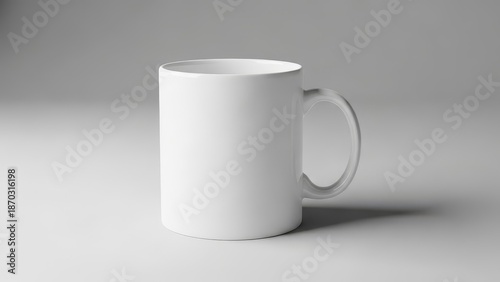 Obraz premium A plain white ceramic coffee mug with a handle, casting a subtle shadow on a...