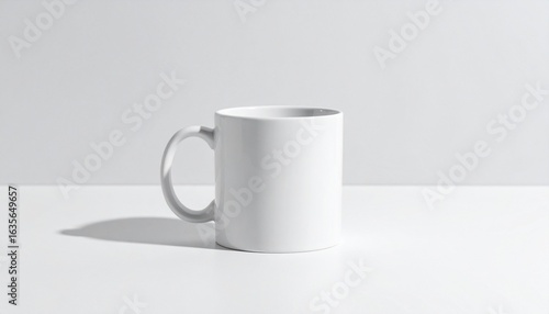 Obraz premium A plain white ceramic mug casting a soft shadow—symbolizing simplicity,...