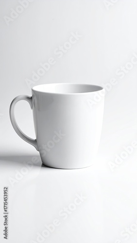 © Achaa, Obraz premium A plain white coffee mug, front view, on a white background