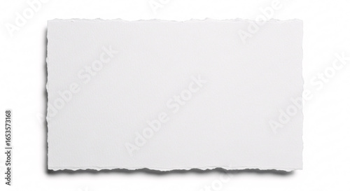 Obraz premium A plain white piece of paper with a rough edge is laying flat on a white...