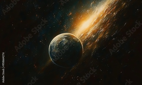 Obraz premium A Planet Emerging from a Glowing Cosmic Rift