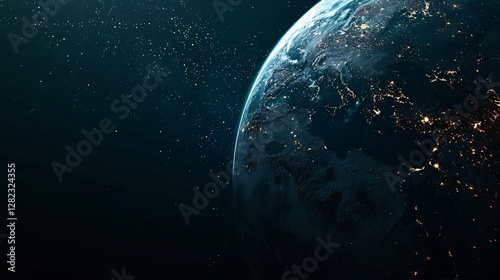 © Studicon, Fototapeta premium A planet with a dark blue color and a bright light on it