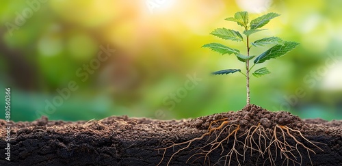 © creative_art86, Fototapeta premium a plant growing on the ground with a background effect