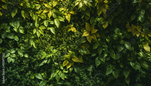 © Enixanne, Obraz premium A plant wall, vertical garden.