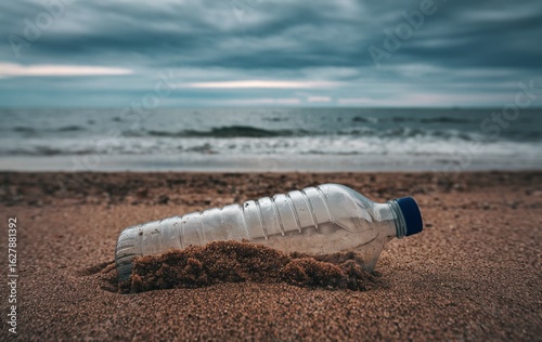 Obraz premium A plastic bottle lying on the beach