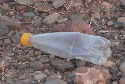 © Oualid, Obraz premium A plastic bottle lying on the ground, Plastic pollution