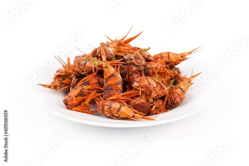 Obraz premium A plate of fried locusts isolated on a white background. Generative AI