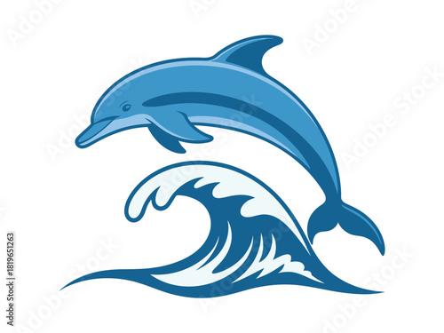 © Imran , Fototapeta premium A playful blue dolphin leaps through a cresting ocean wave.