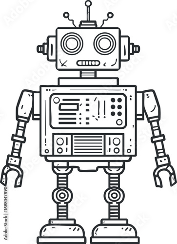 © vadymstock, Fototapeta premium A playful cartoon robot character designed for fun and creativity in illustrations. Black on transparent background.