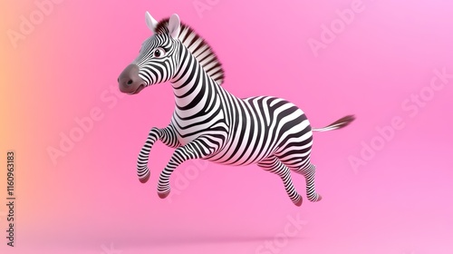 Fototapeta premium A playful 3D zebra jumping against a pink background.