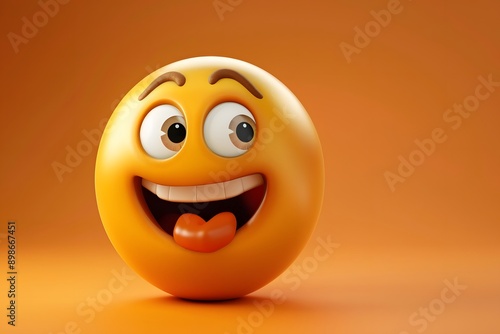 Fototapeta premium A playful emoji character with a cheeky facial expression on an orange...