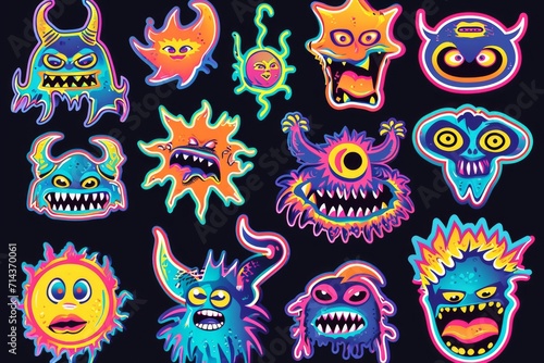 © ChaoticMind, Obraz premium A playful gang of colorful cartoon monsters come to life in a whimsical clipart-style illustration full of vibrant art and eye-catching graphics