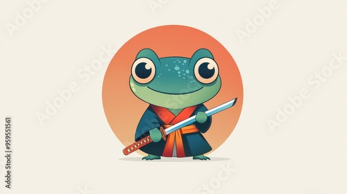 Obraz premium A playful illustration featuring a samurai frog wielding a katana, dressed in...