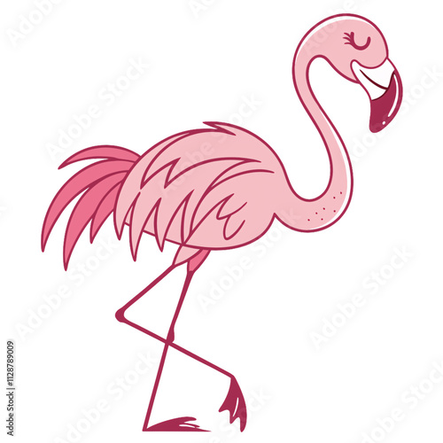Fototapeta premium A playful illustration of a pink flamingo, standing gracefully on one leg...