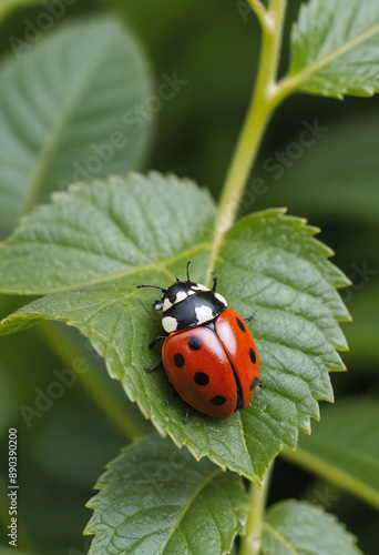 © jarntag, Fototapeta premium A playful ladybug crawling on a plant.