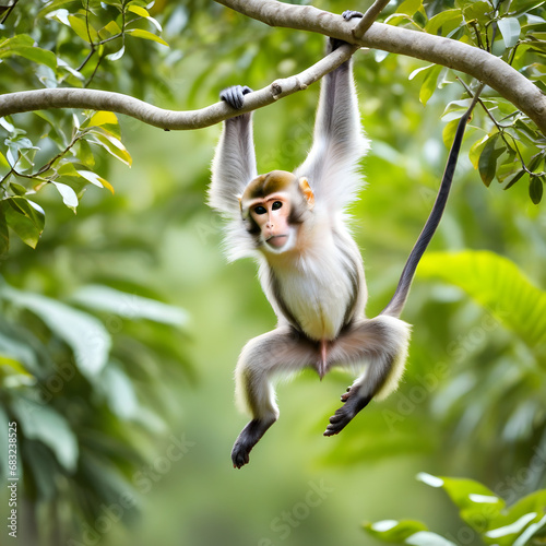 © Matt Henry, Fototapeta premium A playful monkey, its long tail gracefully draped from a tree branch