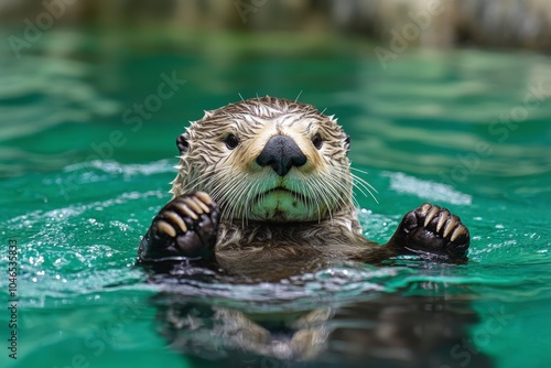 Fototapeta premium A playful otter floating in clear water, showcasing its adorable features.