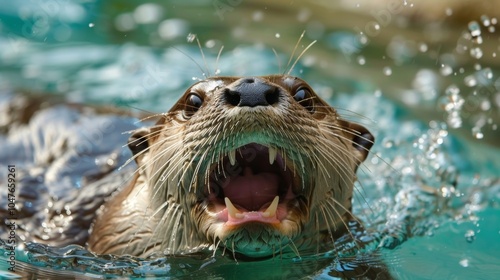 Obraz premium A playful otter swimming bellyup and making funny faces much to the delight of onlookers.