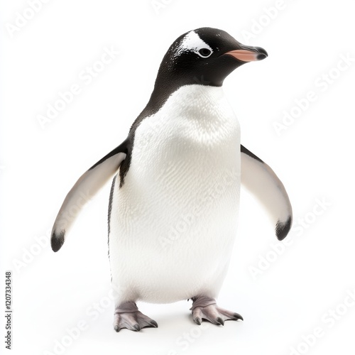 © ORG, Obraz premium A playful penguin looking directly ahead, set against a simple white background, highlighting its distinctive features and natural stance.