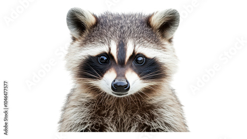 © Zain, Fototapeta premium A playful raccoon showing its curious expression against a transparent background, emphasizing its distinct facial markings and features.