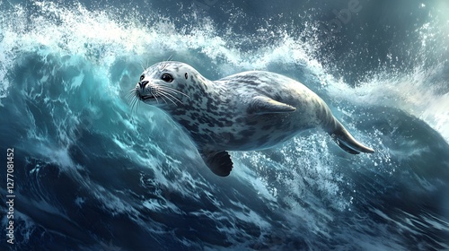 © bvbflo1, Fototapeta premium A playful seal diving in the waves of the sea