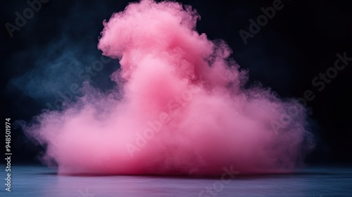 Naklejka premium A plume of pink smoke billows gracefully on a stage against a dark,...