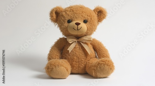 Obraz premium A plush teddy bear with a soft texture and a bow, symbolizing comfort and...