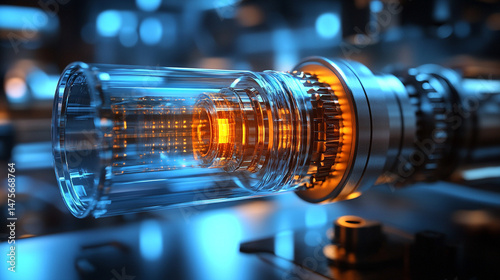 Obraz premium A pneumatic hydraulic piston designed for industrial machinery, showcasing...