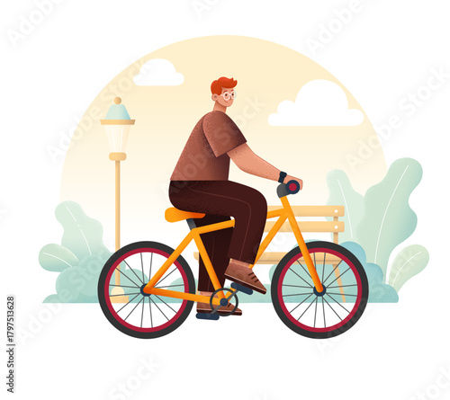 © Elsandro, Fototapeta premium A PNG web element featuring a man riding a bicycle.